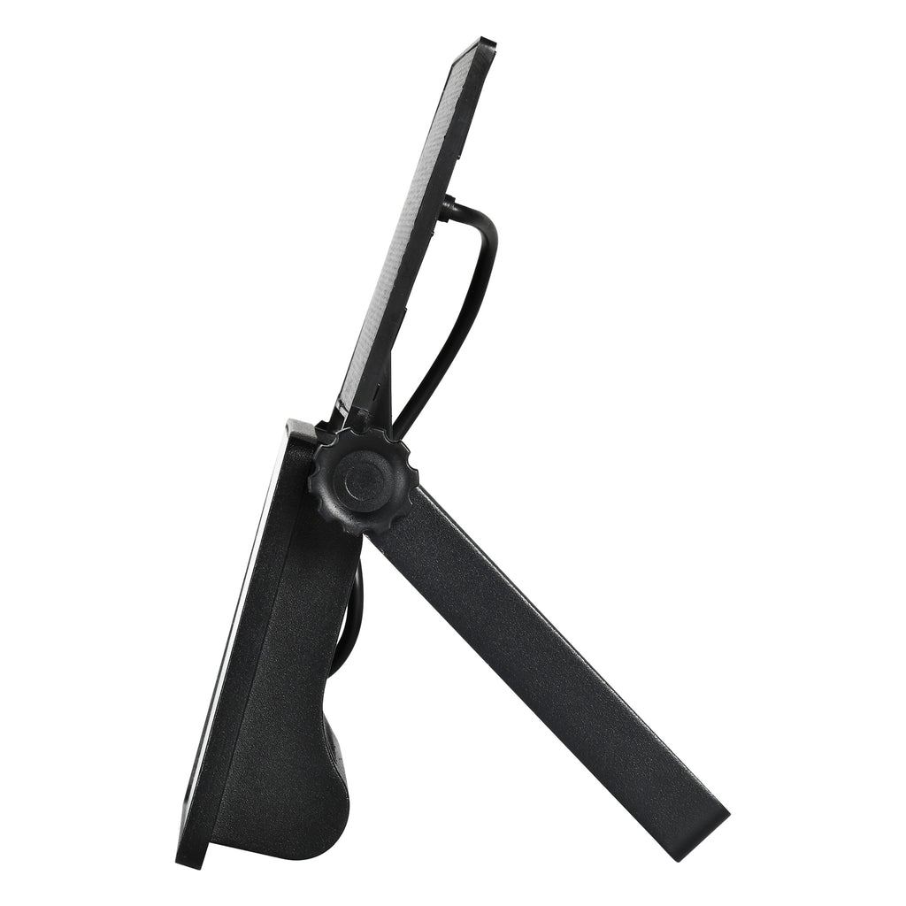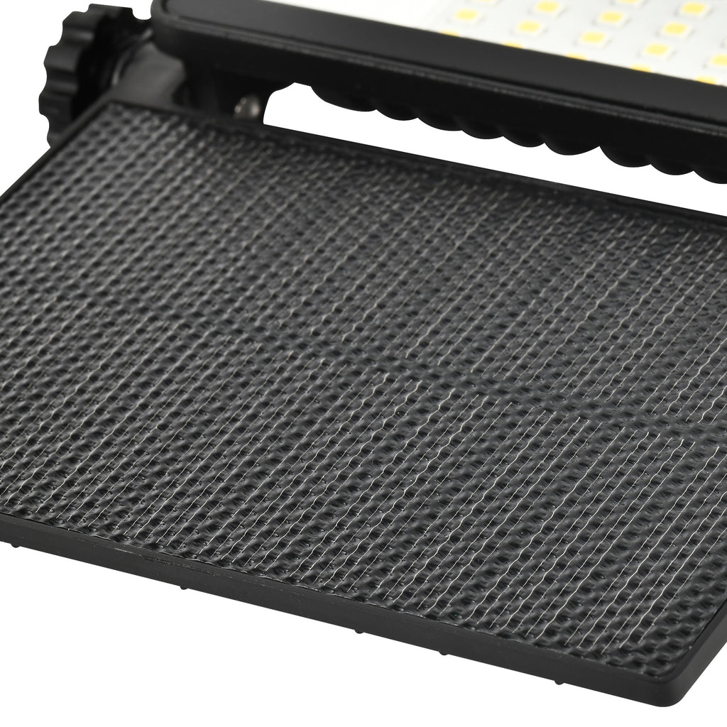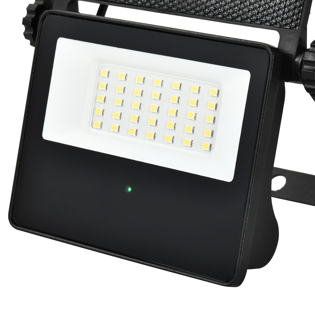 This Floodlight contains a Solar Photocell which can charge up to 8 Hours to last up to 2 rainy days with full charge, also includes a sensor with a distance between 6 and 10 meters, with a detection angle of 180 degrees and the sensor will remain on for only 22 seconds after being triggered to help save energy